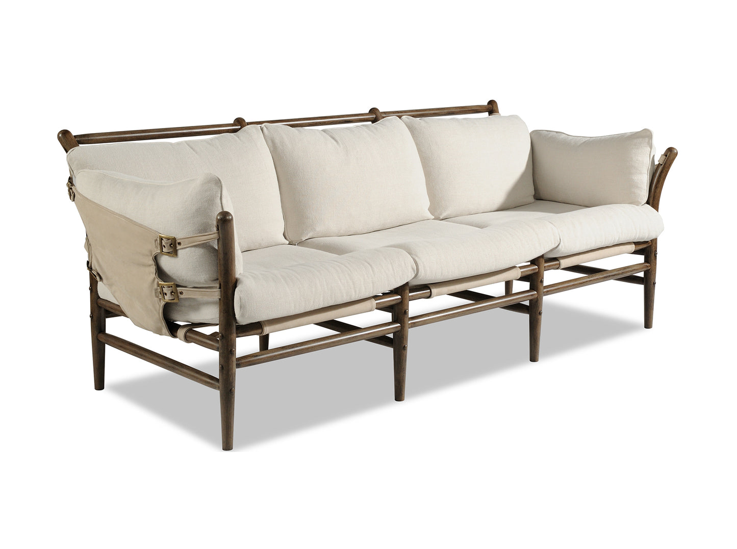 Description: The Era Sofa. Serenity seat cushion with posh-down back cushion and arm. Pillows- standard. Outarm straps and seat deck straps must be leather. No nails available.