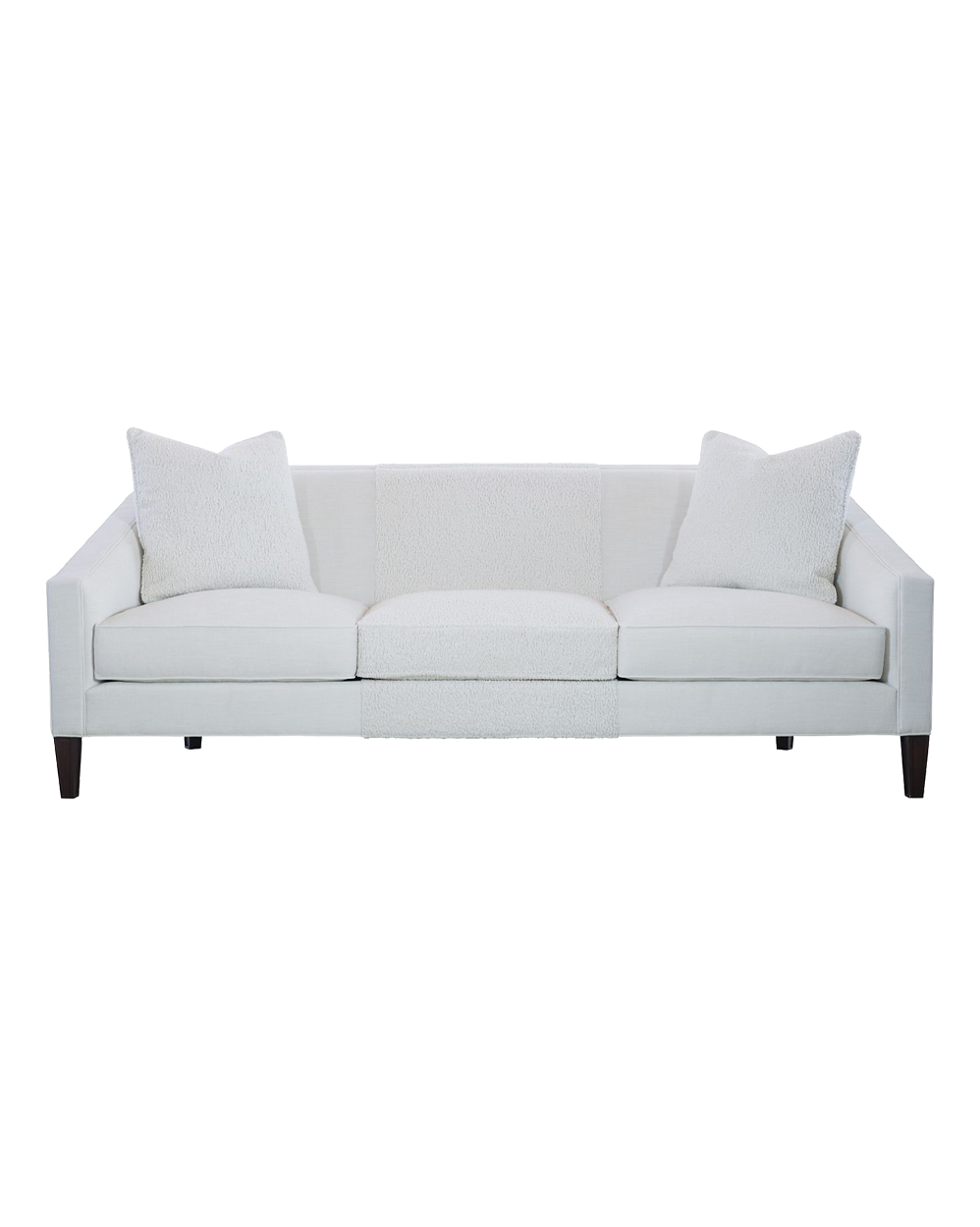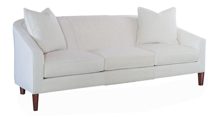 Description: The Harper Sofa was designed by Kim Scodro. It is the perfect addition to a family room or living space. It’s comfortable and utterly stylish. The elegantly curved back enhances its splendor. It sits upon elegantly tapered posts. This three-seat cushion, tight back sofa with its gently sloping track arms is generously scaled at 95”. The Harper is standard with two 20” goose feather and down throw pillows.