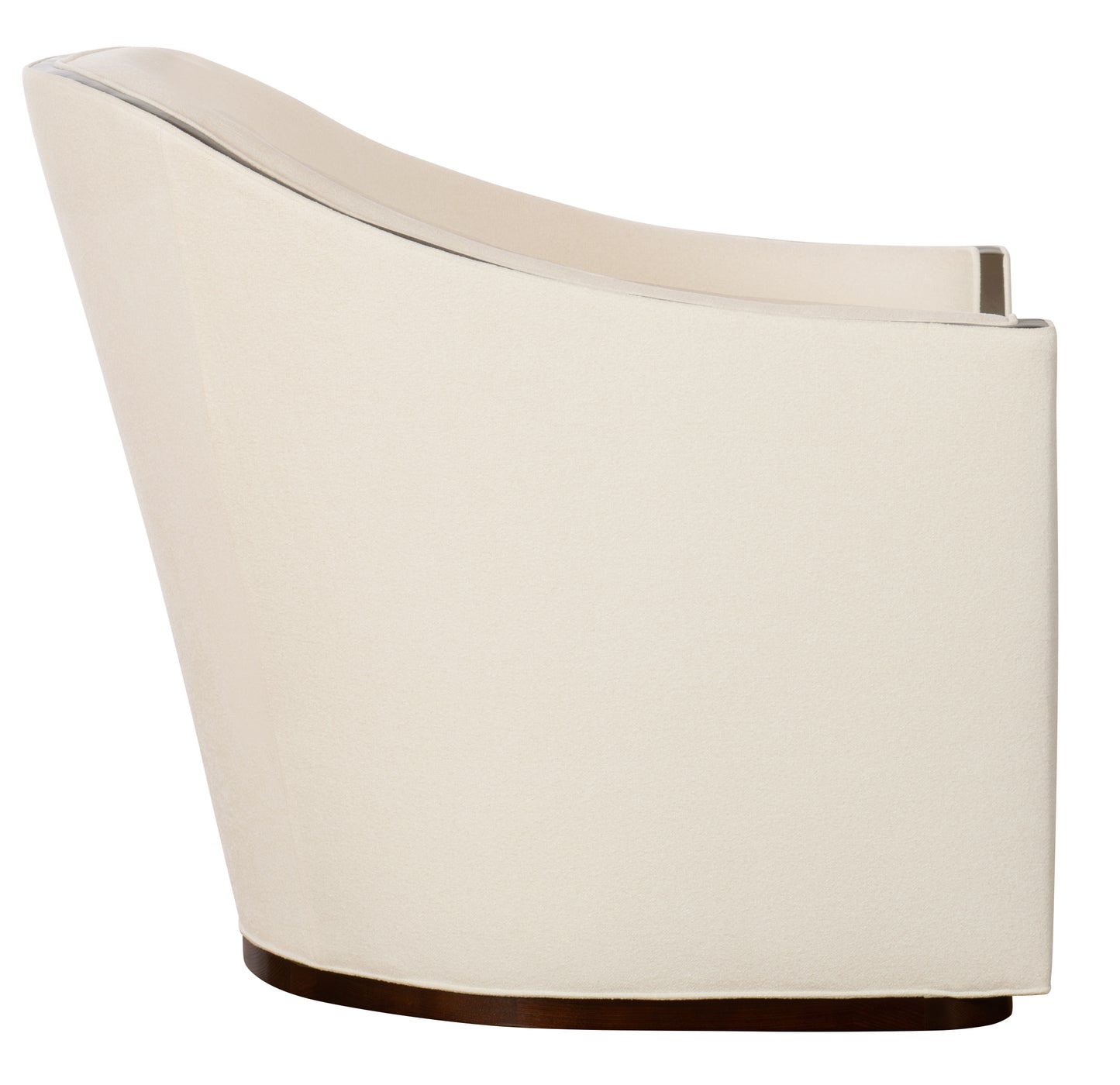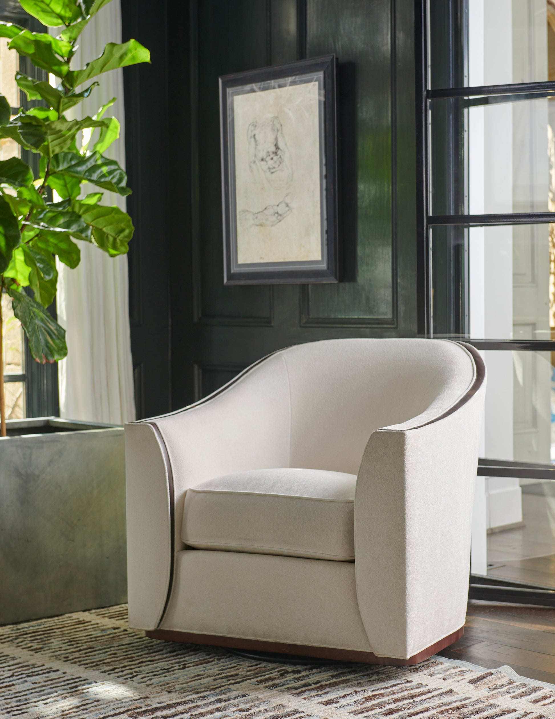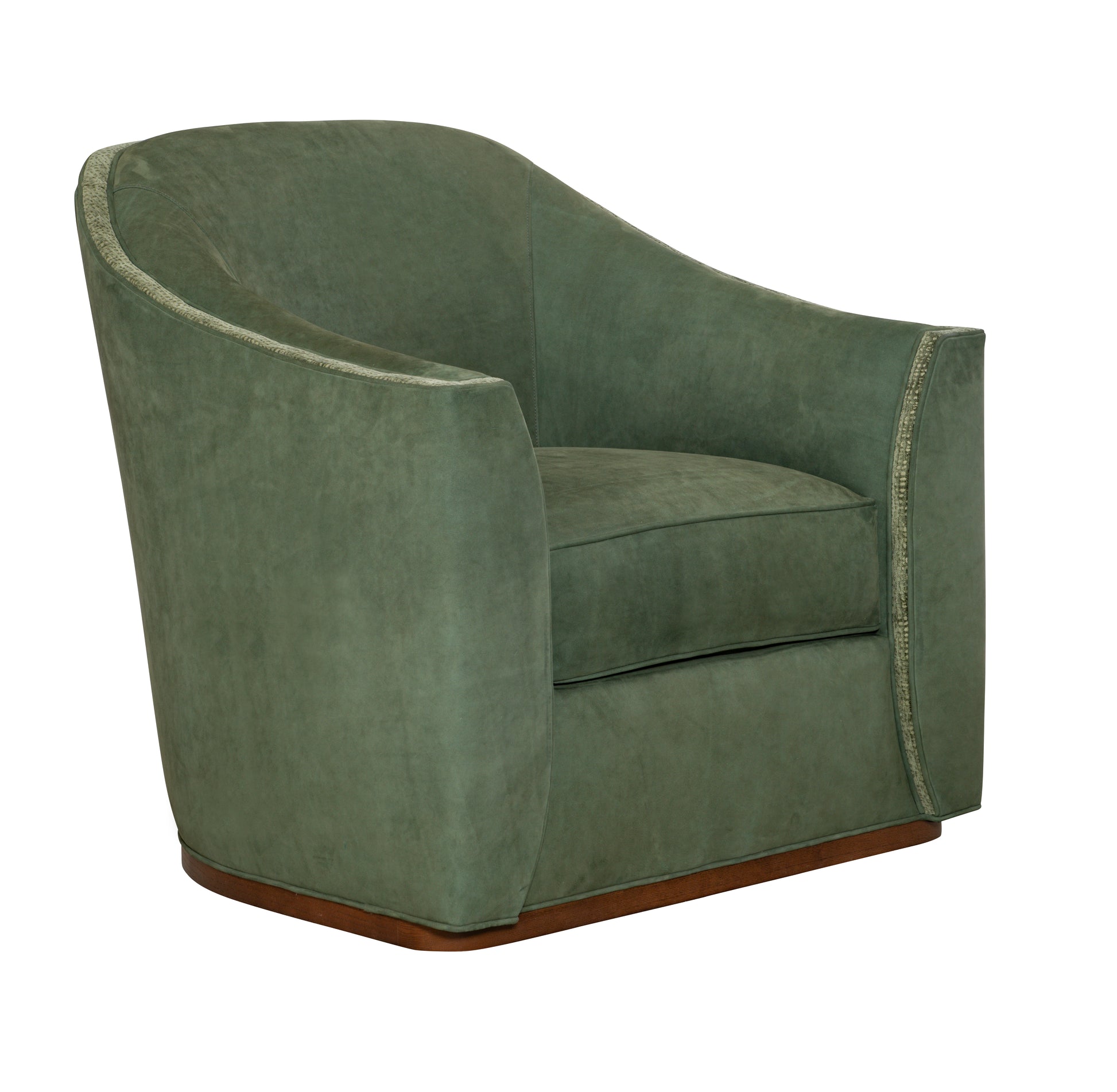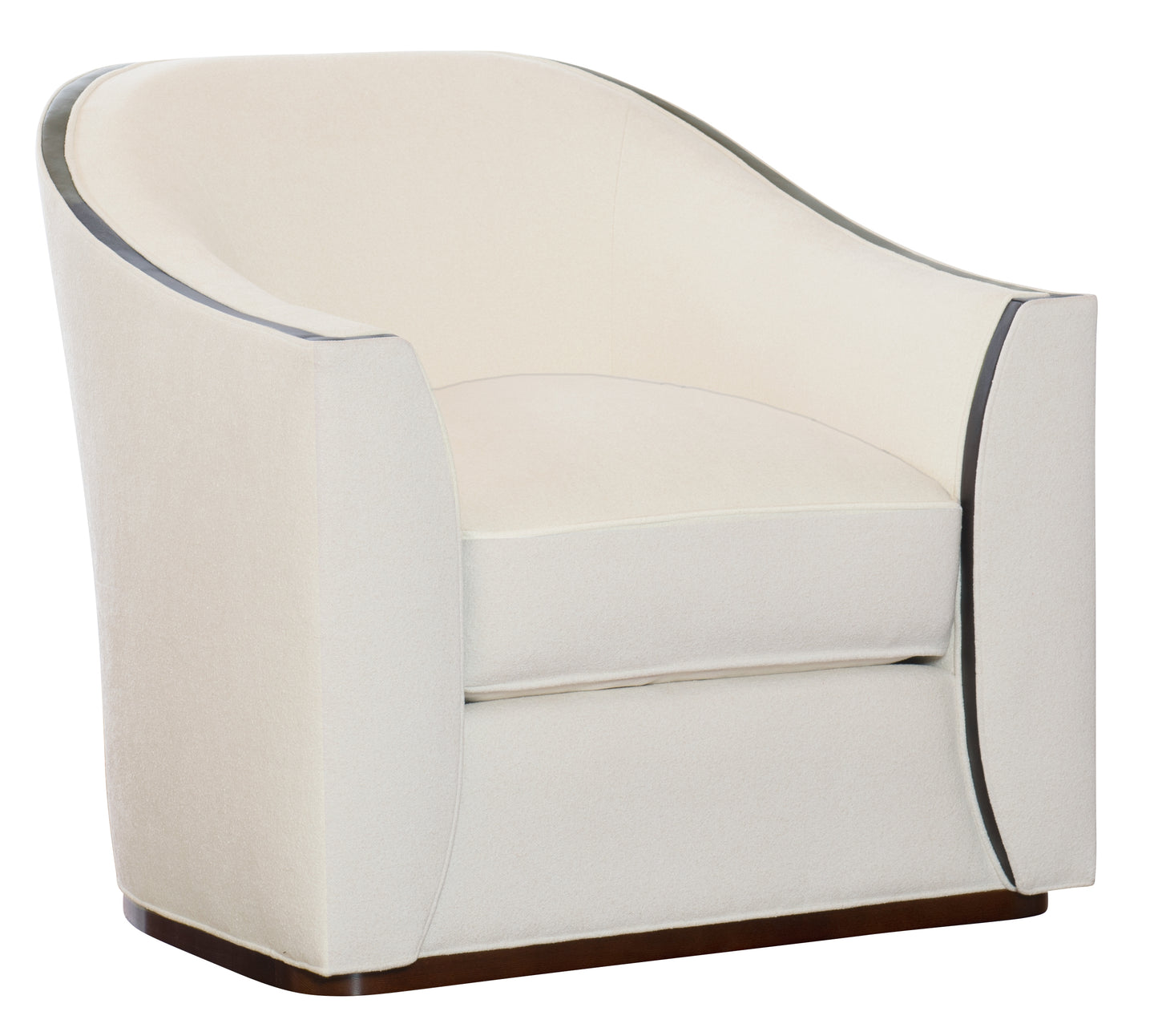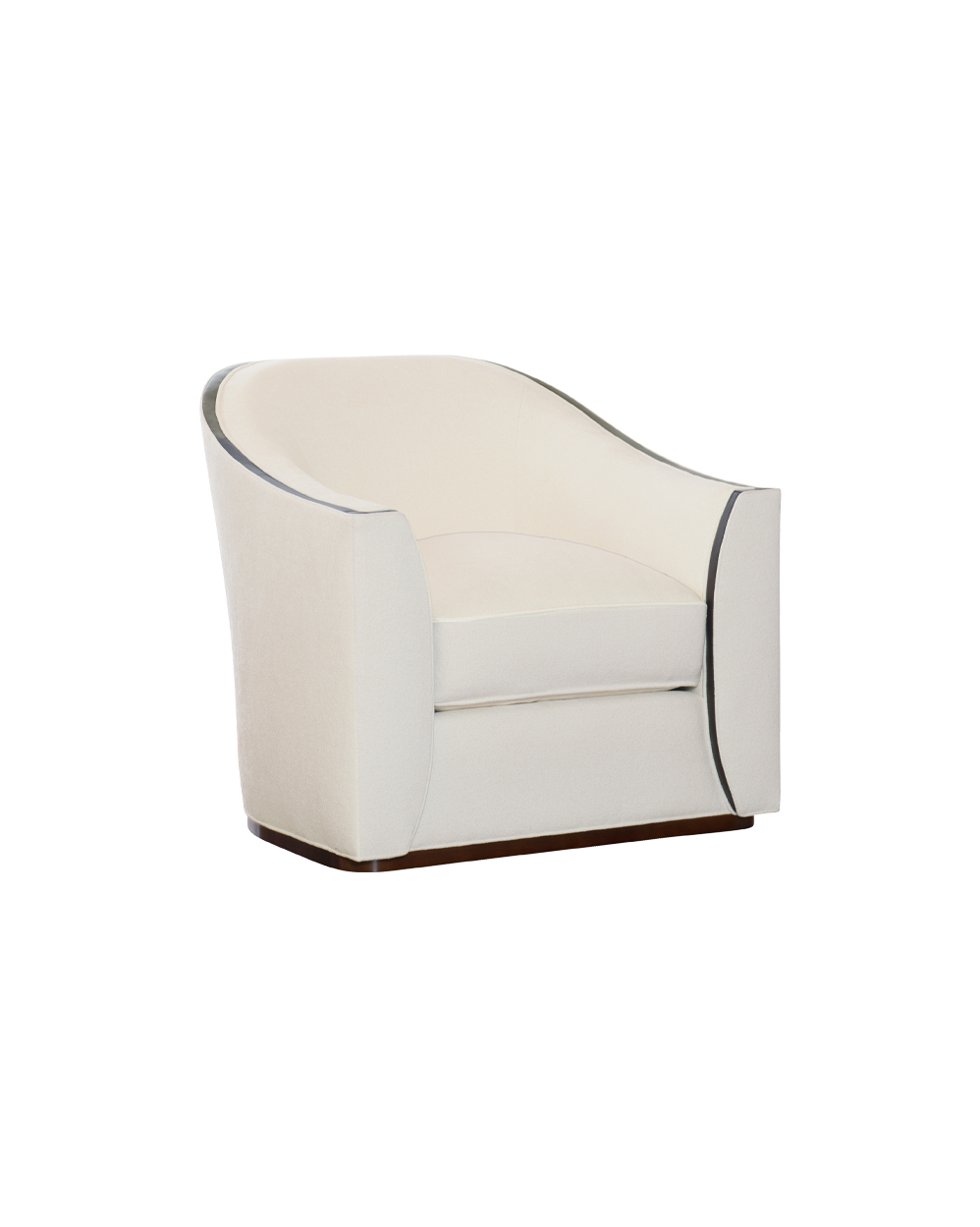 Description: The Jupiter Chair was inspired by a distinctive 1940s French Deco lounge chair. David’s modern interpretation is accentuated by the softened lines and the elegant concave shape of the arm’s interior. “I named this chair Jupiter because it’s out of this world in comfort and style,” David says. Indeed, a soft, fully upholstered body and luxurious construction make it a sublime place to sit. Optional contrast piping is a natural to accentuate its sculptural form. The Jupiter has a plinth-style base made from American Ash that hides its swivel mechanism. Spring-down seat cushion is standard.