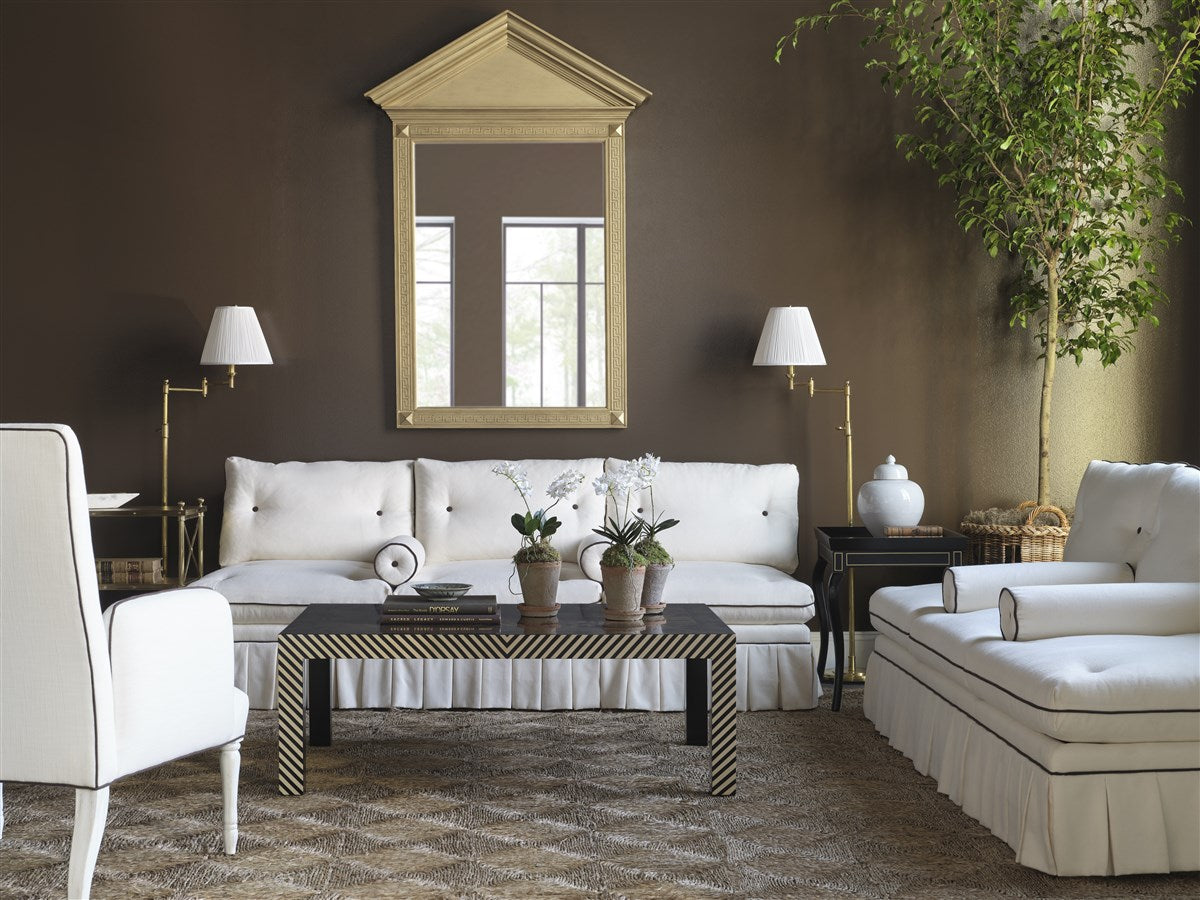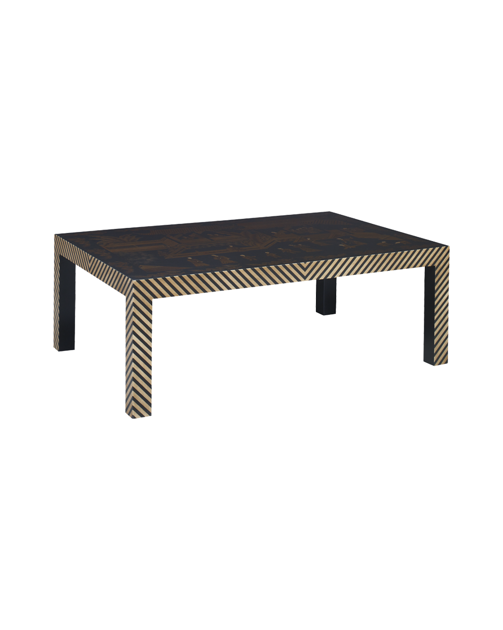 Description: An elevated, Asian-inspired take on the classic modernist Parsons table, Larkspur features a hand-painted chinoiserie scene on its top and a diagonal design on its sides.