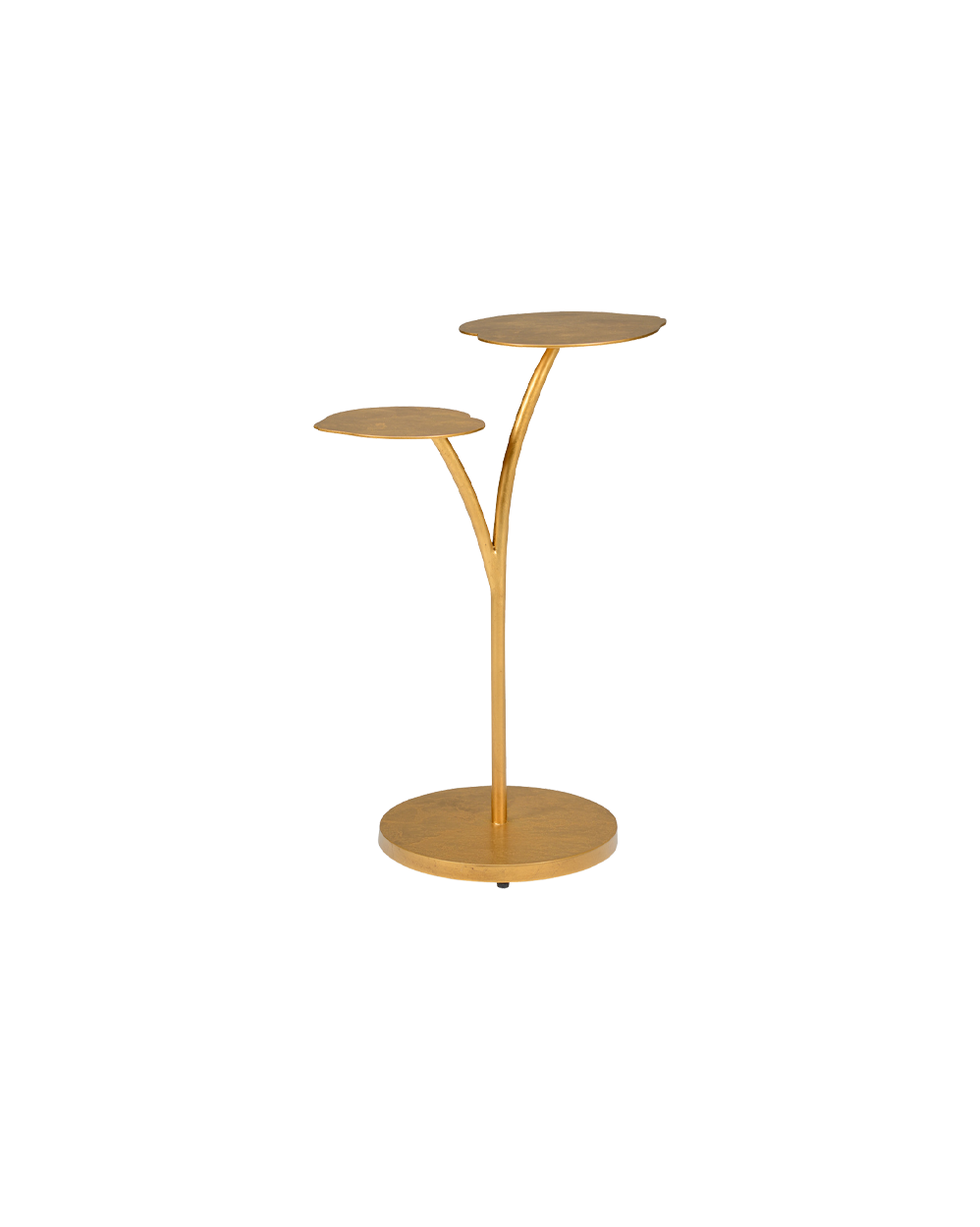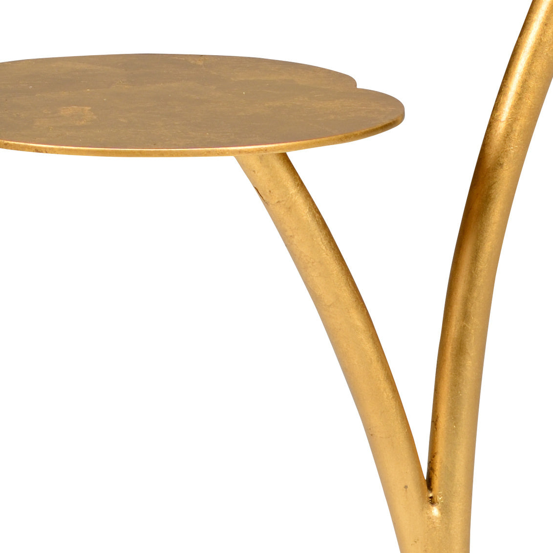 Description: Antique gold leaf iron leaf-shaped two-tier table.