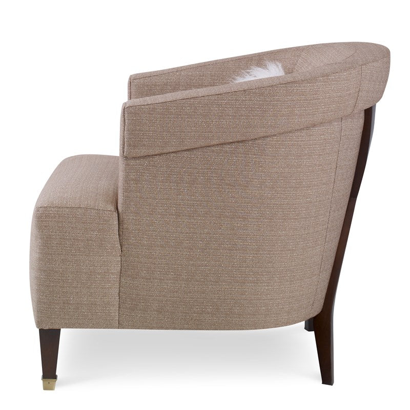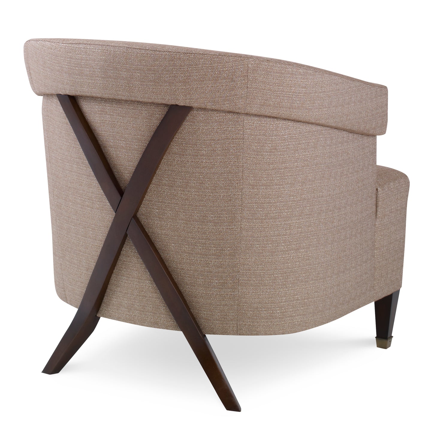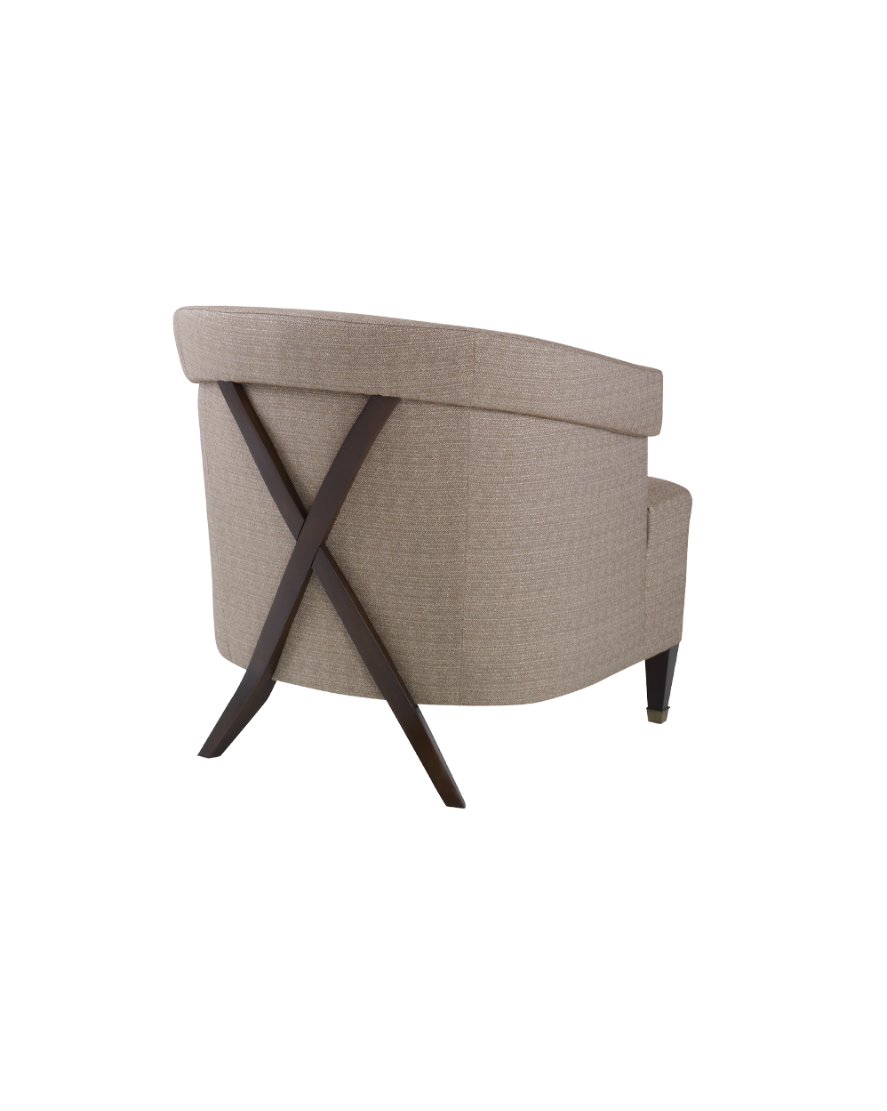 Description: A classic tub chair with refined square arms. What defines this silhouette is the exceptionally complicated X-shaped back legs that stretch the length of the outside back. Made of solid beech wood.