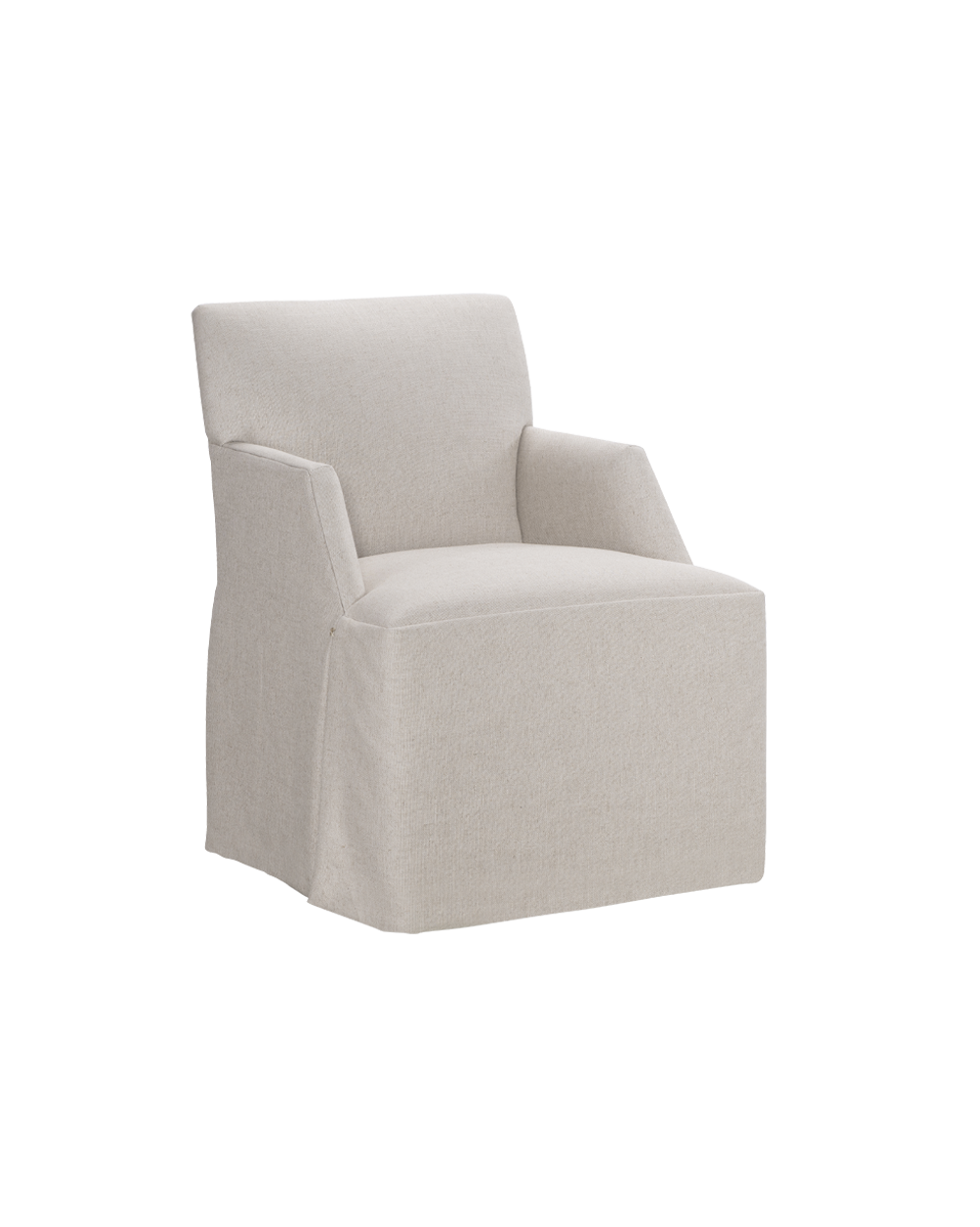 The European-inspired dining or club chair, featuring a waterfall arm and a tight seat, is characterized by its smooth, flowing lines and stitch detail at the pleats, reflecting a modern design aesthetic that emphasizes sleek forms and subtle craftsmanship. This style draws inspiration from mid-century modern design, known for its minimalist approach and attention to detail, while incorporating contemporary elements.